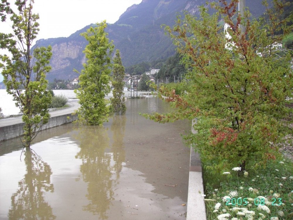 Flüelen ist in den vergangenen Jahren immer wieder von Hochwassern betroffen gewesen. Das letzte Hochwasser (Seehochwasser) war im Jahr 2005.